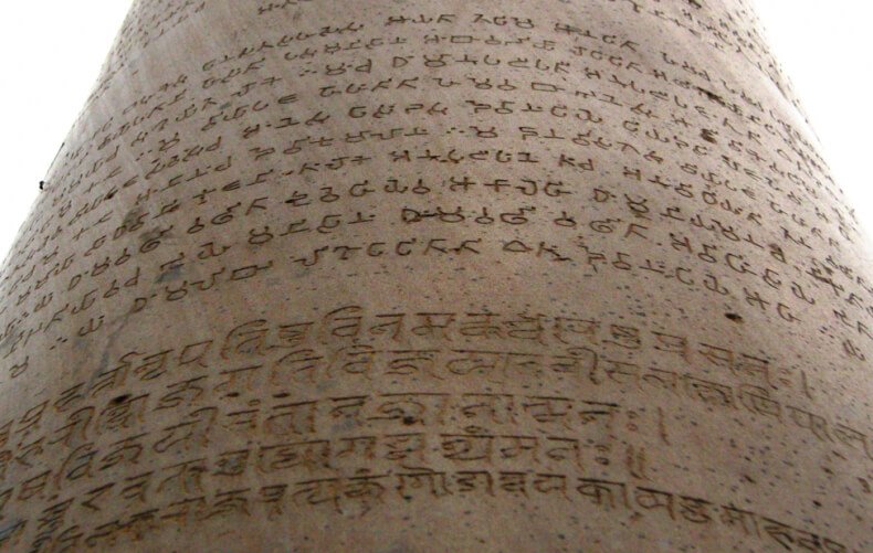 Brahmi and Devanagari were found together on a pillar. Source: Wikimedia Commons