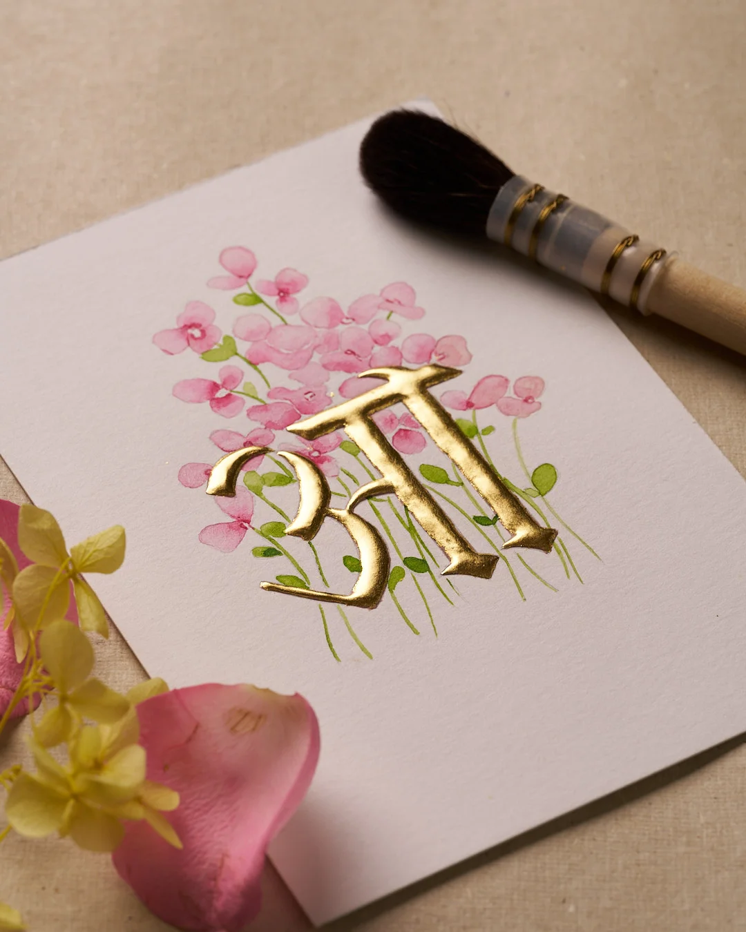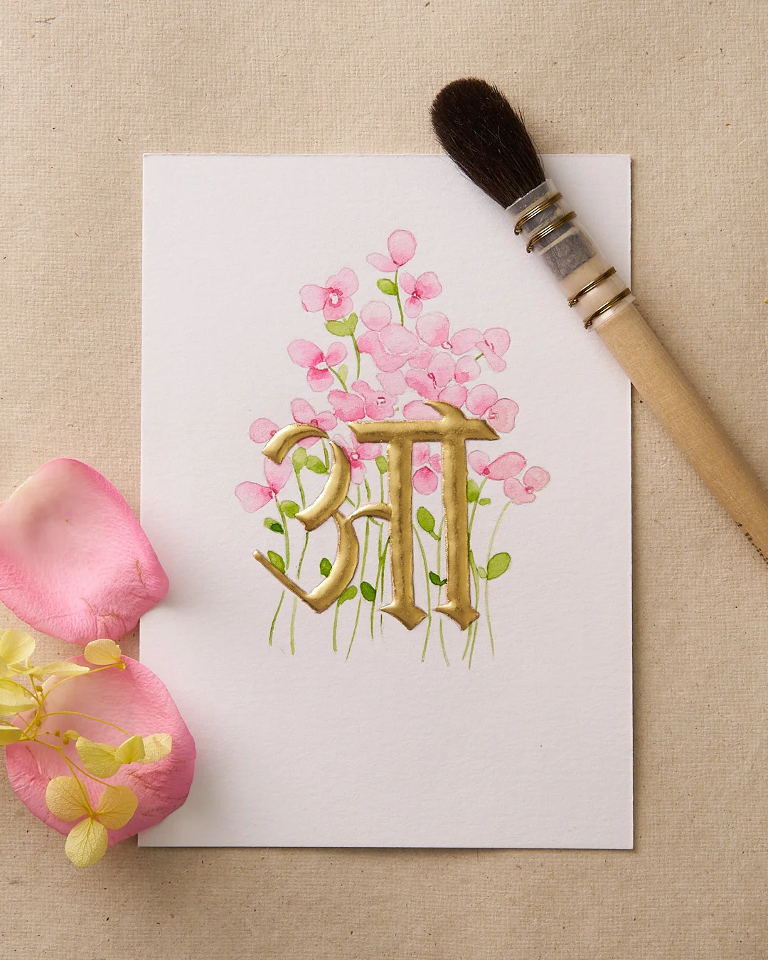 Introduce elegance to your space with our Hindi Vowel Series. Each vowel, meticulously crafted in 24k gold, blooms with delicate watercolor florals, creating a unique and beautiful display of the Devanagari script.