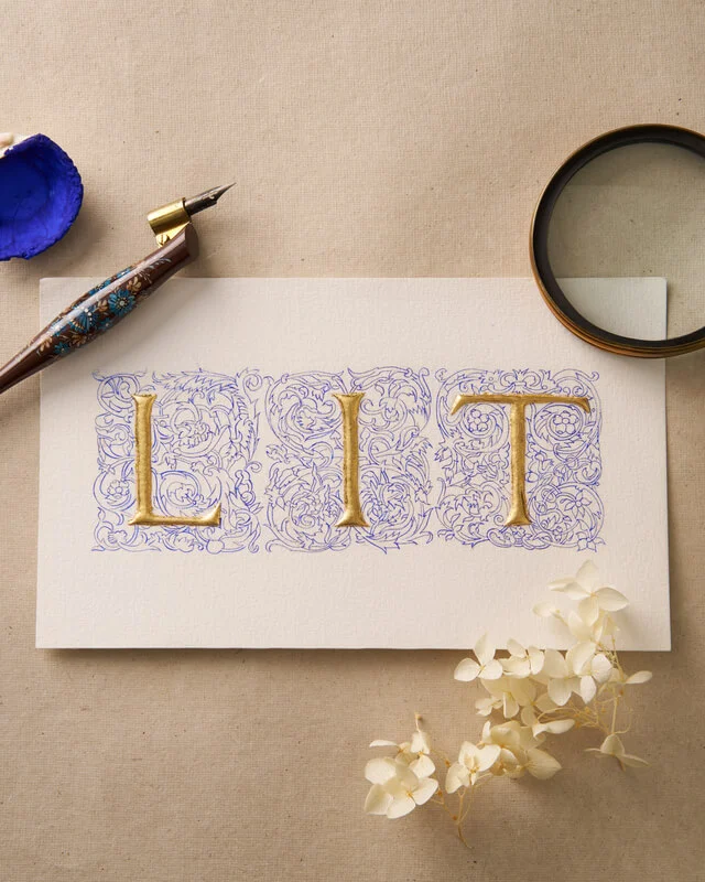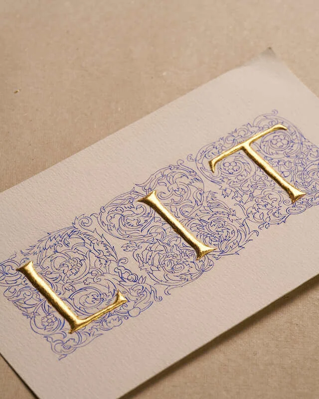 Opulence personified. Inspired by Gen Z, this handcrafted artwork features the word 'LIT' gilded in gleaming gold and adorned with intricate Lapis Lazuli filigree. A statement piece that embodies luxury and illumination.