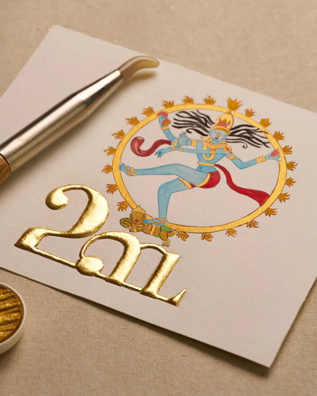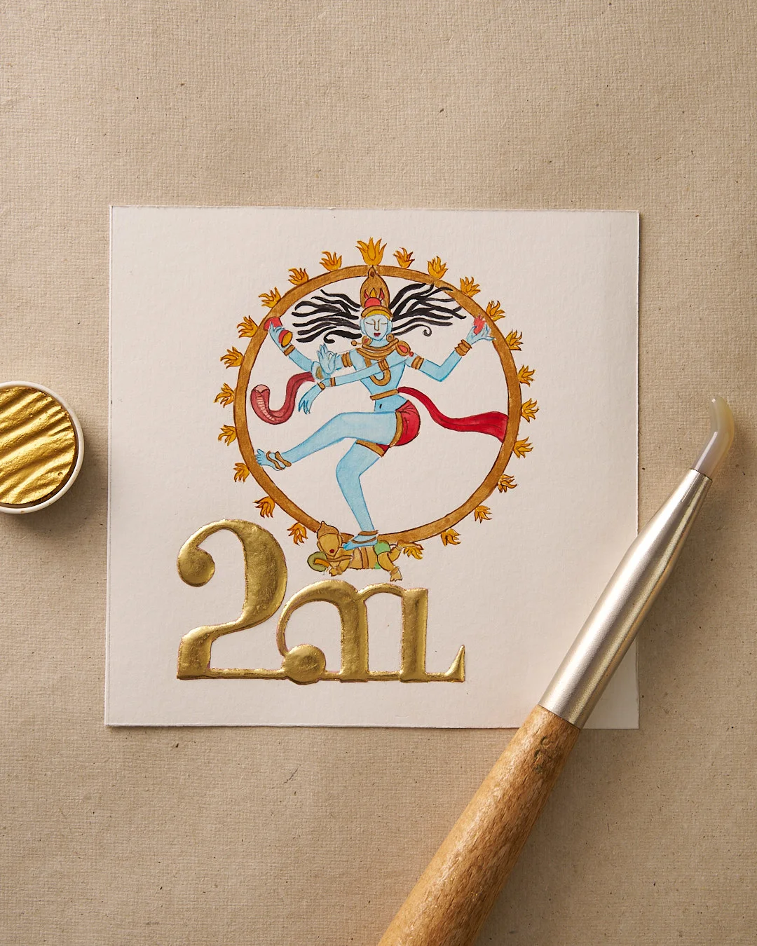 - Materials: 24K Gold with watercolors on 300 GSM mixed-media paper