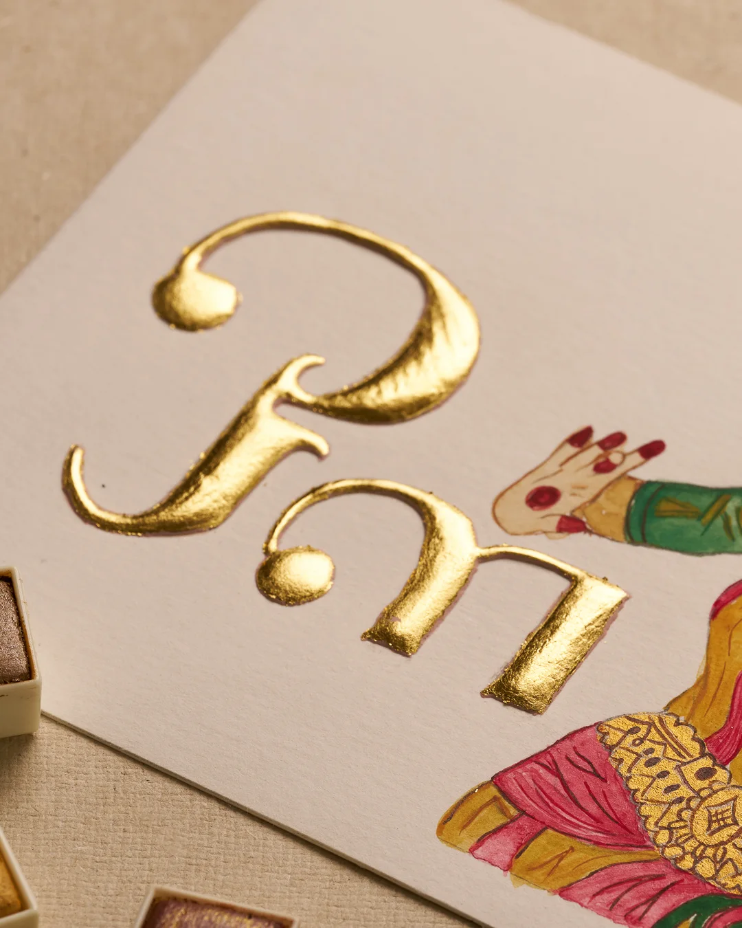 - Materials: 24K Gold with watercolors on 300 GSM mixed-media paper