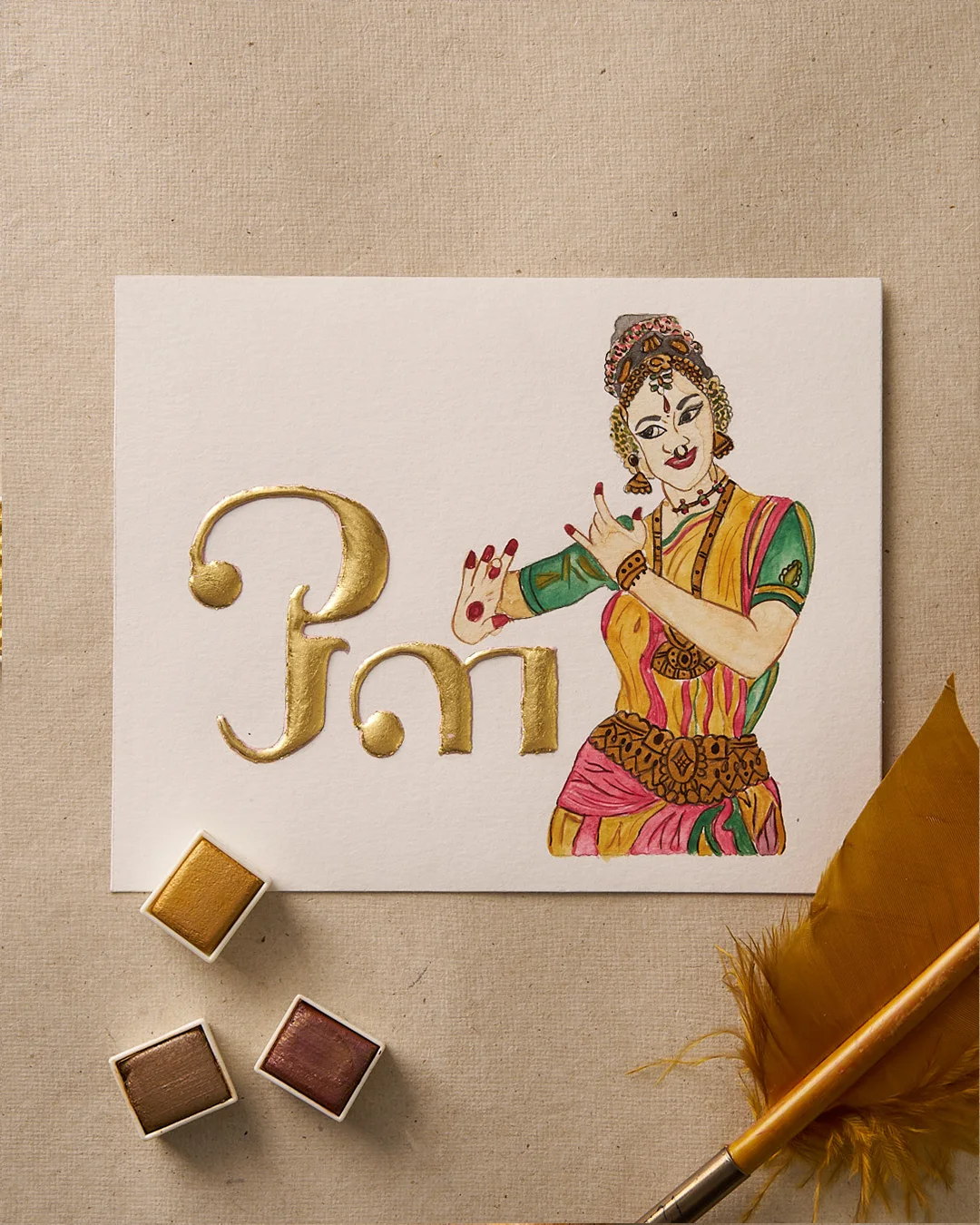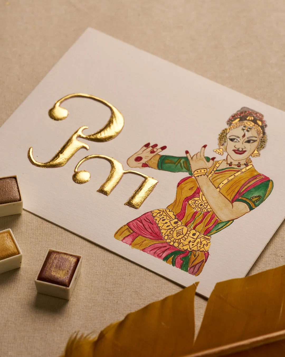A unique blend of artistic expression and linguistic exploration, our Tamil Vowel Series features each letter meticulously crafted in gold, blossoming with stunning watercolor depictions of iconic elements from Tamil Nadu. Each gilded letter is adorned with captivating watercolor illustrations, showcasing the essence of Tamil heritage.